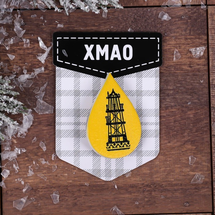 Деревянный значок "ХМАО.Капля", 5х6,8 см.