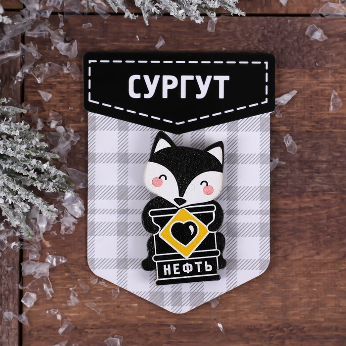 Деревянный значок "Сургут.Лиса", 5х6,8 см.